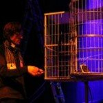 Tomek Kolczynski – Kolczynski, auch bekannt als Kold, hielt sein Bühnenbild betont schlicht. Auf dem einzigen Tischchen standen nur 2-3 Gerätchen, der (obligatorische) Mac und ein Vogelkäfig. Sein Auftritt unter dem Thema “Imitating the Parrot“, bei dem er, begleitet von seinem Computer, Kreisch, Sing und ähnliche Vogel- oder Papagengeräusche von sich gab, schien ihm selbst sehr viel Spass zu machen. Es fehlte jedoch bald ein wenig an Abwechslung und/oder Struktur, um den Funken auf das Publikum überspringen zu lassen. Dieser Effekt, dass das machen der Musik sehr viel Spass, das Zuhören allein jedoch bald ein wenig eintönig wird, haben viele schon erlebt. Es ist aber immer schwierig zu sagen, was nun den Funken zurückhält.